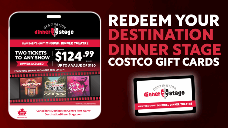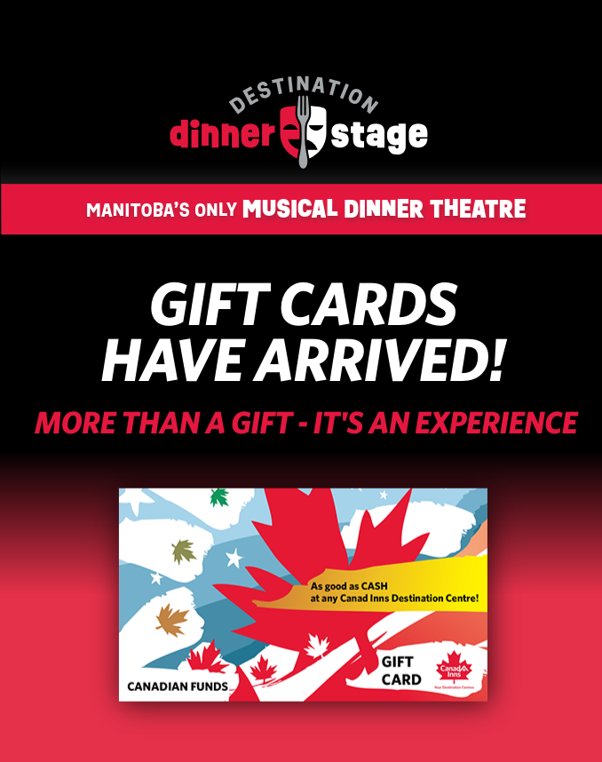 - Call the Destination Dinner Stage Box Office at 204-694-SHOW (7469) and provide your gift card number and preferred show date.